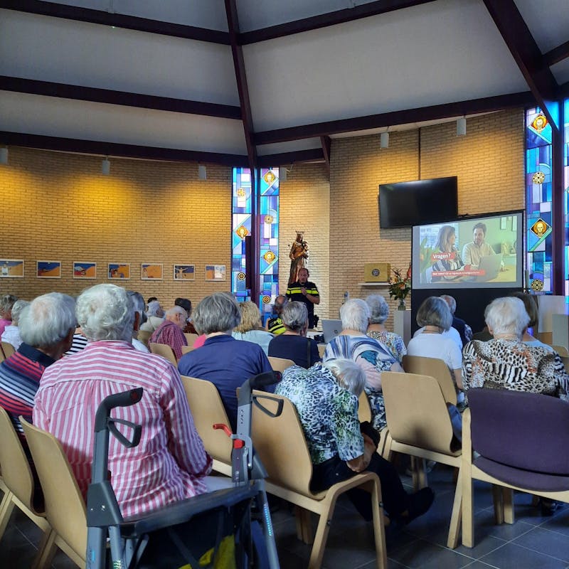In de St. Josephkerk aan de Kerklaan in Nieuwerkerk waren meer dan 80 ouderen aanwezig voor de presentatie van de Regiobank en de politie. Tijdens de bijeenkomst werd ingegaan op de verschillende manieren waarop oplichters te werk gaan, zoals via internet, telefoon of aan de deur. Bezoekers konden na afloop een folder meenemen. Daarin staan goede tips.