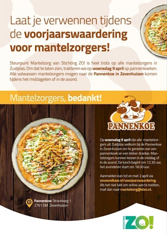 Laat je verwennen en kom lekker pannenkoeken eten. Zie voor meer informatie de bijgaande flyer.