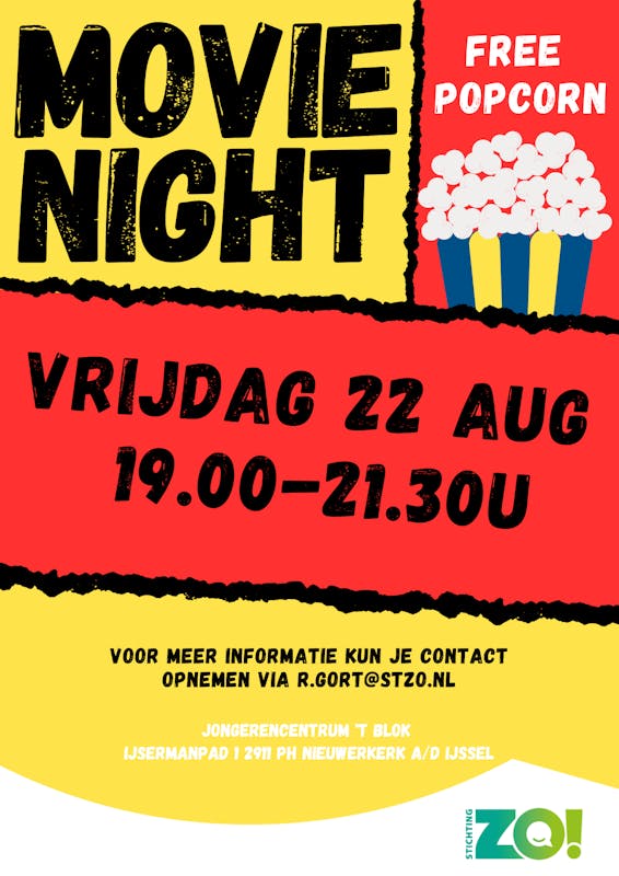 Op vrijdag 22 augustus van 19.00 tot 21.30 uur is er een filmavond in Jongerencentrum ‘t Blok. Er wordt een toffe film gedraaid. Wij zorgen voor wat drinken en wat lekkers. Neem je vrienden mee of kom alleen en maak er een gezellige avond van! Toegang is gratis!