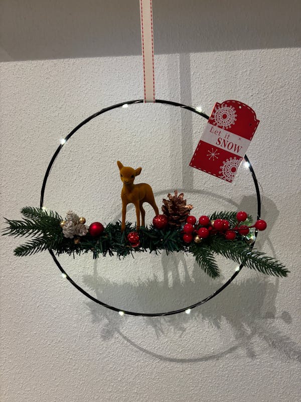 Tijdens deze workshop maak je een Kerstkrans met verschillende materialen. Een unieke zelfgemaakte decoratie voor op tafel of aan je deur tijdens de Kerstdagen.
