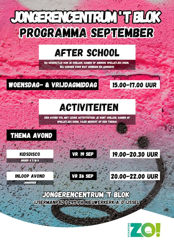 Het programma voor de maand September in Jongerencentrum ‘t Blok!